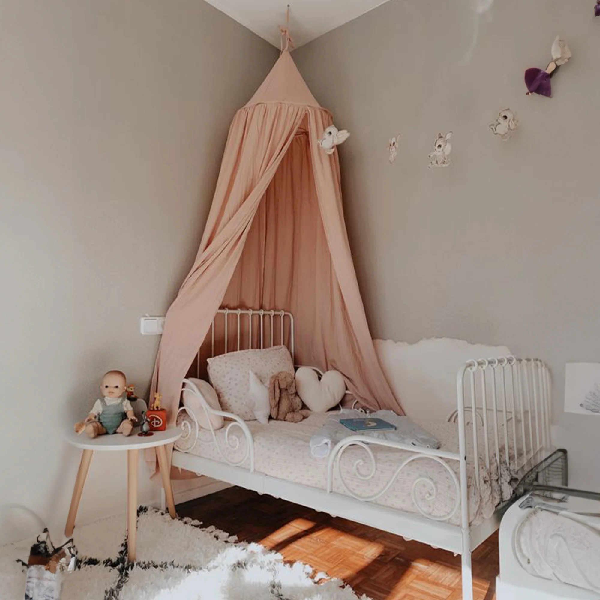 Verwandle das Babybett mit dem Vintage-Look-Moskitonetz in eine gemütliche Oase. Schaffe Geborgenheit und Atmosphäre im Babyzimmer.