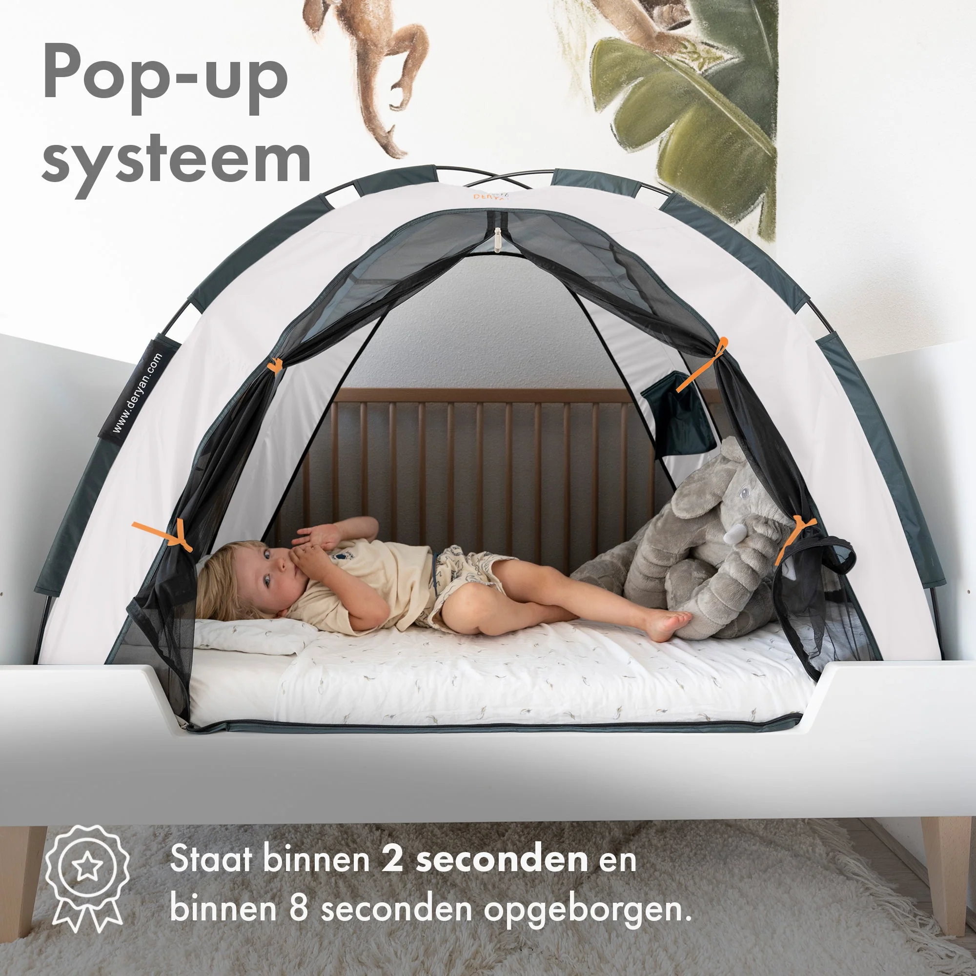 Schütze den Schlaf deines Kindes mit dem DERYAN-Bettzelt, einer Festung gegen Mücken und Insekten.
